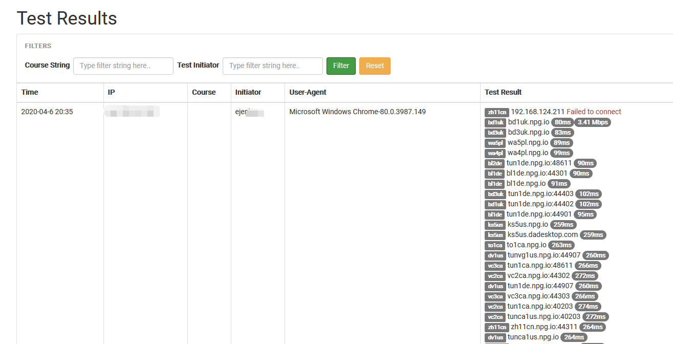 匿名测试允许在您的培训课程中没有帐户的人测试与您选择的服务器或DaDesktop提供的任何可用服务器的连接速度和质量。